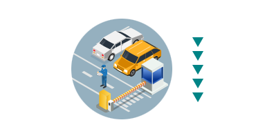 カメラ、制御PC、精算機を用意して対象駐車場に設置工事を行い、運営を行います。特定ナンバー(地元ナンバー)のみ無料にすることも可能です。