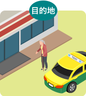 目的地で下車。加盟施設であればタクシーが割引になる市のポイントをGET