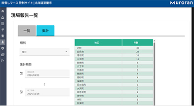 除雪機械アプリから発信される路上駐車や雪出しの報告を一元管理でき、違反の多い地区の見える化が可能。自治会などとの的確な連携を支援します。