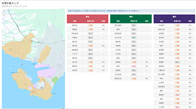 除雪の計画を地区単位で公開します。除雪車が来るか分からないという住民の不安が解消され、問い合わせ件数も大幅に削減されます。