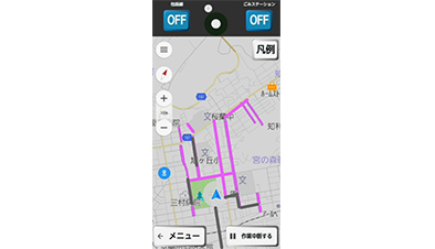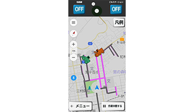 融雪剤散布路線を地図上に表示できます。紙の地図を都度確認する必要がなくなります。