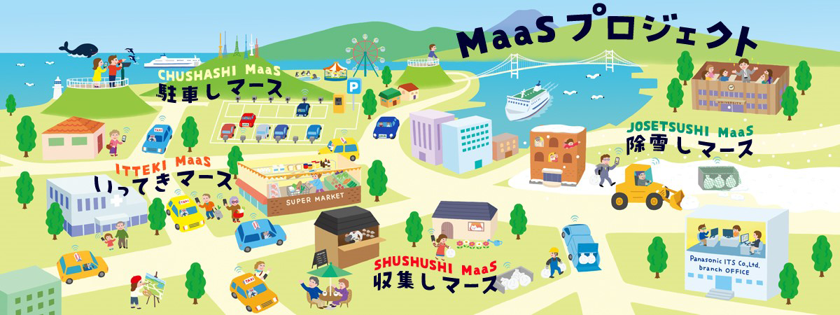 パナソニックITSのMaaSプロジェクトは、そのまちの価値を高め、人々の生き方を変える、新しいプロジェクト。外出しやすい社会をつくる「いってきマース」をはじめ、当社独自のアイデアと技術で地域が抱える様々な課題を解決しています。